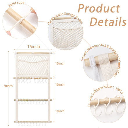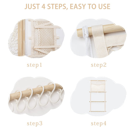• 【HIGH QUALITY MATERIAL】- The hook of baby headbands and bows holder is an upgraded version to prevent detachment and better help you store baby headbands. The net pocket and belt are made of high-quality cotton canvas belt, with good load-bearing capacity. The wooden stick is very smooth, sturdy, and not easy to deform and crack, making it more durable.