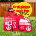 • INCLUDES COMPLETE FIREFIGHTER OUTFIT: Our kids play tent isn't just a tent – it's an immersive experience. Complete with a firefighter costume for kids, hat, and walkie-talkie, your little one steps into the shoes of a real-life hero. Beyond the fun, the firefighter costume nurtures essential life skills.