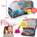 • SERVE SWEET TREATS: With Kiddzery kids pop up tent you can let them take orders, create a variety of tasty-looking ice cream combinations and sell to their little customers. The kids play tent truck features a sound button that plays realistic ice cream truck tunes and songs.