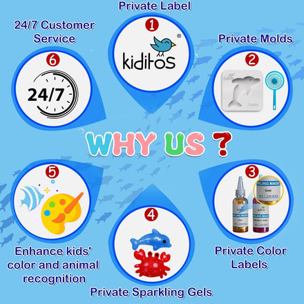 • Aqua Fairy Water Gel Kit:Designed with bright, eye-catching colors, the Magic Water Elf Kit is excellent for toddlers learning about colors. The variety of sea creature molds enhances cognitive skills through shape and color recognition.