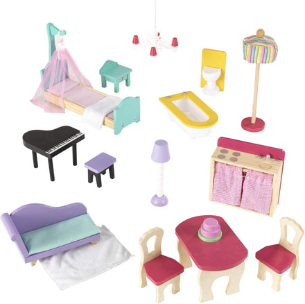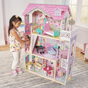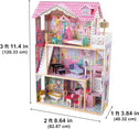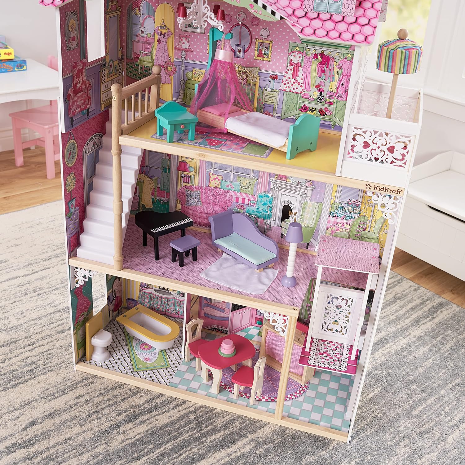Product Description The bright and cheerful KidKraft Annabelle Dollhouse stands nearly four feet tall and offers three levels of fun, four spacious rooms and a balcony. This predominately pink mansion is extra feminine with delicate white scrollwork details on corners and the balcony. A gliding elevator brings dolls up to the second floor and the included 17-piece furniture pack creates endless decoration and play possibilities for 12-inch fashion dolls. Dolls will have a dreamy sleep in the bed with gauzy canopy. Or, they can relax on the settee and listen to a friend play the piano. A bathroom and kitchen round out the rooms for role playing. Make believe fun is never-ending in the wooden Annabelle Dollhouse from KidKraft. From the Manufacturer With our Annabelle Dollhouse, playtime will never be dull. From the molded latticework to the chandelier hanging from the ceiling, this dollhouse is full of gorgeous details sure to put a smile on any young girl’s face.