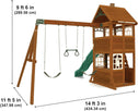 • Pre-cut, pre-drilled and pre-stained lumber with factory applied, child-friendly stain; heavy-duty swing hangers and swing chains; pre-assembled panels for easier set-up; five-year limited wooden component warranty