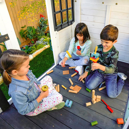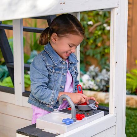 • Two-story clubhouse with built-in play kitchen sink, faucet and burner for role playing