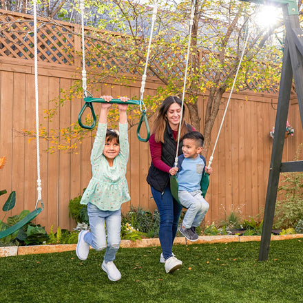 • Child-friendly, water-based stain and heavy-duty swing beams; five-year limited warranty