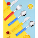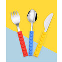 Kids' 3Pcs Flatware with Brick Toy Silicone Handle Childrens Stainless Steel Silverware Toddler Utensils Spoons+Forks+Knife Set