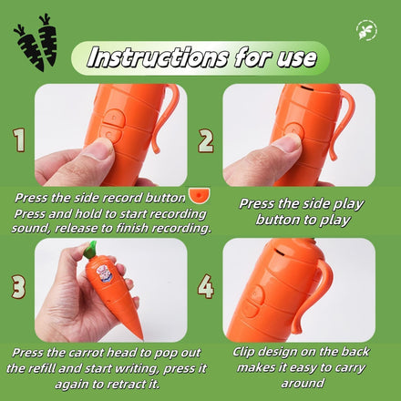 - Kids Carrot Recorder Toy Ballpoint Pen Writing Tool with 20s Playback Feature for Children Learning