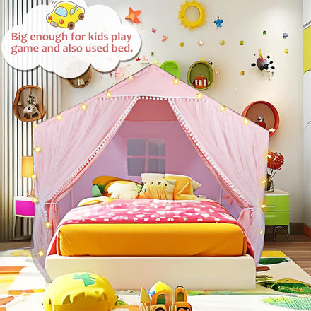 Kids Play Tents Indoor Outdoor Toddler Tent Kids Playhouse Tent Large Teepee Castle (Pink)