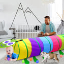 • [Indoor & Outdoor Toddler Toys]: The crawl through play tunnel toy is the best gift for 1 2 3 year old boys girls, also great for dogs, cats as well! The baby play tunnel unfolds size is 72*17.3*17.3 inches, fold-up size is 17.3*13.4*1.2 inches. This baby toy uses the set at parties, picnics, parks, daycare, school, carnivals, sleepovers, or simply keeps the dream tent at home! Note: children aged 3 years old should play under their parent's accompany.