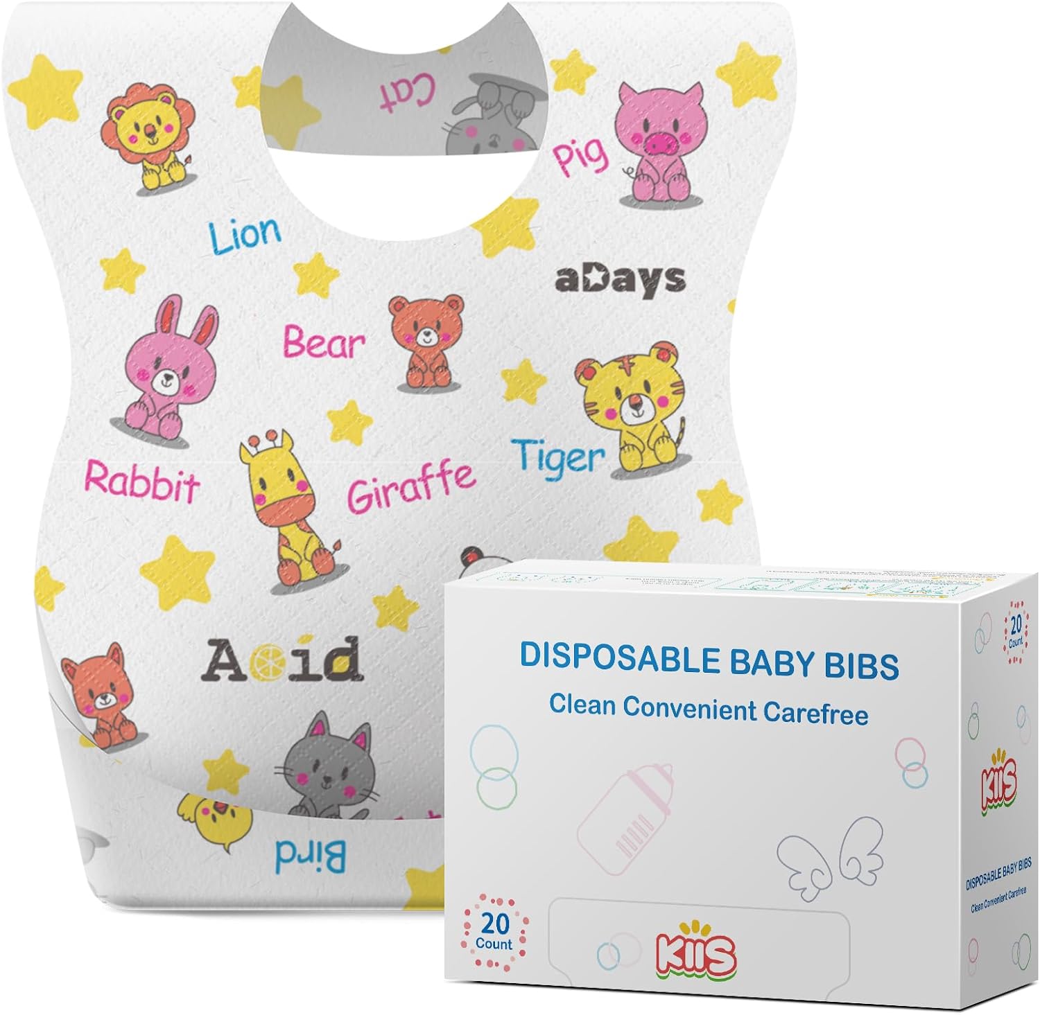 KIIS Disposable Baby Bibs for Travel - Waterproof Disposable Paper Bibs for Infant, Toddlers & Kids - Travel & Daycare Essentials for Mess-Free Meals. baby smock bib for eating, apron bibs for babies.