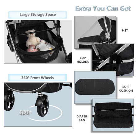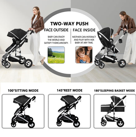 • Convertible Baby Stroller: Can convert to a bassinet; Reversible mode to meet various needs; High landscape protects baby away from car fumes; Forward seat for view outside; Backward mode promote parent-child interaction