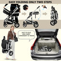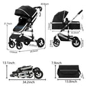 Kinder King 2 in 1 Convertible Baby Stroller, Folding High Landscape Infant Carriage, Newborn Reversible Bassinet Pram, Adjustable Canopy, Diaper Bag, Anti-Shock Toddler Pushchair Stroller, Black