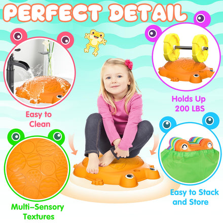 • A Loving and Awesome Gift for Kids of All Ages --- KIZJORYA bright colorful stepping stones set is a fun game for kids who need to release some energy. Our frog stepping stones are ideal as an obstacle course and early educational sensory toys. They encourage balance and coordination and help develop gross motor skills. It's a great birthday, Halloween, Christmas, Thanksgiving, New Year, Children's Day and other holidays gifts for boys and girls 3-4 3-5 4-6 5-7 6-8 years old.
