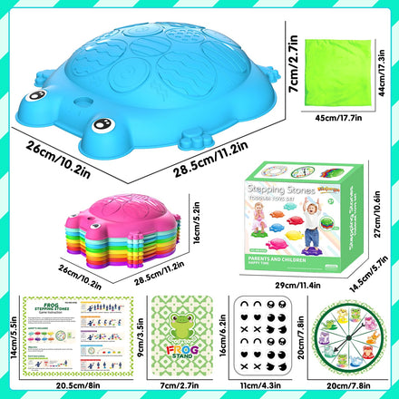 • A Spinner and 30 Activity Cards Start a Multi-level and Fantastic Gaming Experience --- For toddlers, they'll have fun just moving stones around and walking on them. But our fun accessories bring a new twist to traditional gaming. The cards feature 6 activities to play, are fun for slightly older kids, and the spinner makes it a quick and easy game. DIY eye stickers can be used to dress up the different colors of sensory stones, so come and add a variety of cute expressions to your frog!