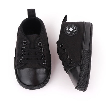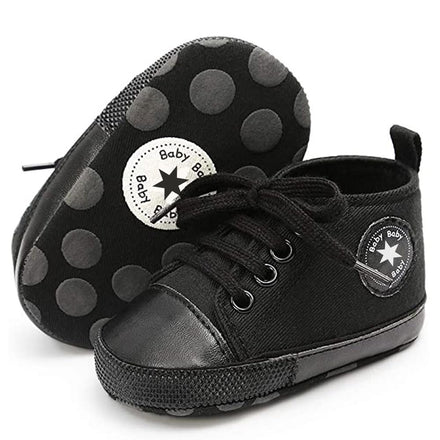 KKIIDDSS Unisex Baby Girls Boys Canvas High-top Shoes, Newborn Infant Anti-Slip Soft Sole Frist Walking Sneakers (A03/Full_Black,12-18 Months)