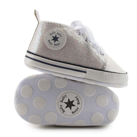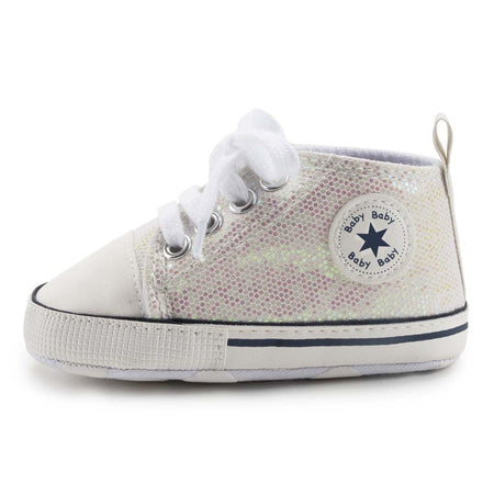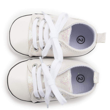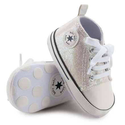 KKIIDDSS Unisex Baby Girls Boys Canvas High-top Shoes, Newborn Infant Anti-Slip Soft Sole Frist Walking Sneakers (B02/Sequin Beige,12-18 Months)
