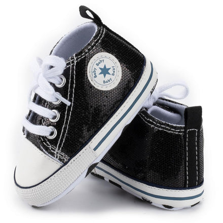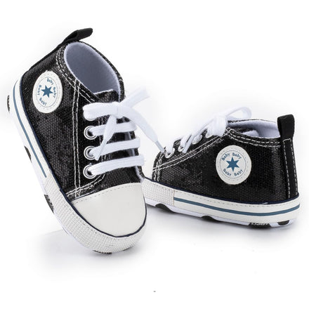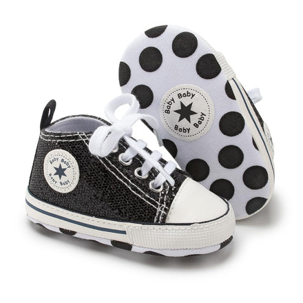 KKIIDDSS Unisex Baby Girls Boys Canvas High-top Shoes, Newborn Infant Anti-Slip Soft Sole Frist Walking Sneakers (B02/Sequin Black,12-18 Months)