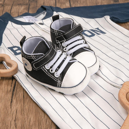 • 【Occaion】-- Classic star high top ankle style,Fashion and Casual Lace up sneakers,it's popular with your child.Cute style suit for indoor walking,crawling,playing ect.Best shower birthday gift for newborn.