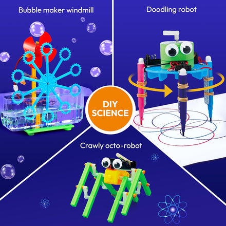• All-In-One Robotics STEM Kit: This kit includes everything needed to build 6 robotics-inspired projects, the Crawly Octo-Robot, Bubble Maker Windmill, Mini Traffic Light, Doodling Robot, Powered Racing Car, and Twinkling Starlight Lamp. With hands-on learning and fun experiments, it’s the perfect gift for budding engineers and young scientists