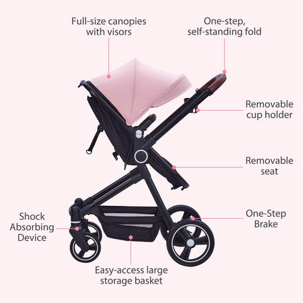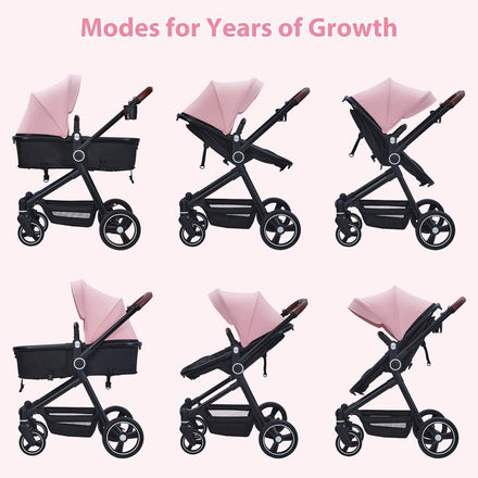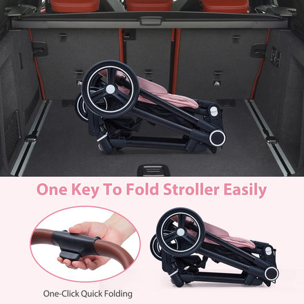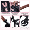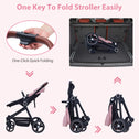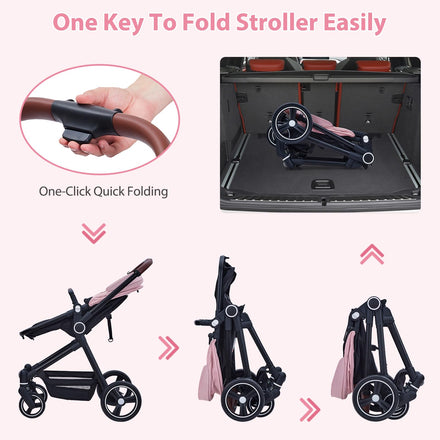 Klysiora 2-in-1 Baby Stroller Travel Stroller Reversible Stroller, Bassinet Stroller with Convenient One-Handed Folding Feature Stroller with Recliner and Oversized Canopy - Pink