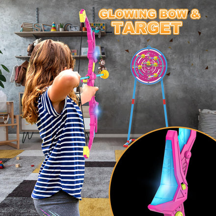 Kmuxilal 2 Pack Kids Bow and Arrow Set with LED Flash Lights, 14 Suction Cup Arrows and Standing Target-Perfect Indoor and Outdoor Archery Set Toy Gift for Boys and Girls Ages 4-12