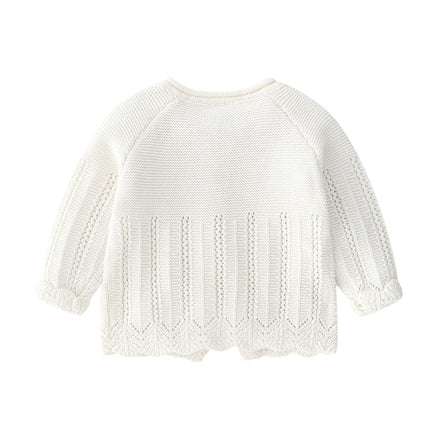 Knitted Baby Girls Cardigan Sweater Toddler Knit Crochet Button Closure Cardigan Top Outwear White