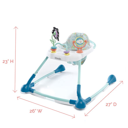 Every explorer’s giant leaps started with tiny steps. Get your little one off on the right foot with the Kolcraft® Tiny Steps™ Too 2-in-1 Activity Walker: an entertaining baby girl walker (or boy!) that keeps baby busy through playtime and grows with them in two stages. Starting as a traditional activity walker, the Tiny Steps™ Too has five fun activities to help aid your baby’s development. When it’s time to take baby’s walking skills to the next level, the Tiny Steps™ Too easily transitions into walk-behind mode. The lightweight, yet sturdy design makes it easy for baby to push the walker while the smooth handle helps give your little one a steady grip. Extra features parents and babies love: padded seat is machine washable and height-adjustable, includes an easy-clean snack tray, features exterior bumpers to prevent scuffing walls and furniture, and includes five fun, developmental activities. This baby boy walker (or girl!) is to be used for children who can support their body weight with their legs, weigh between 15 and 26 lbs., and are less than 32" tall. Assembled Dimensions 26 W x 27 D x 23 H.