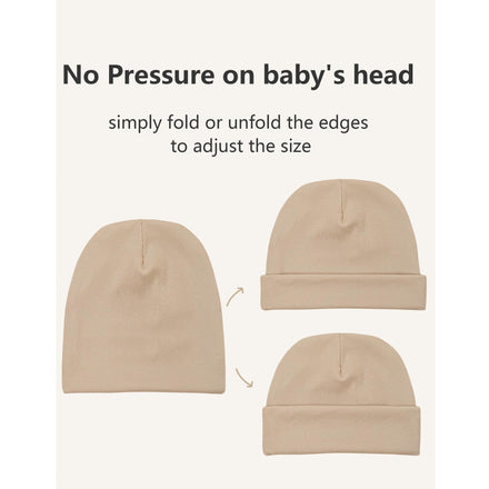 • 【Adjustable Size】- Our baby beanie is available in 2 sizes: suitable for 0-6 months with a circumference ranging from 12''-15.2'', and for 6-24 months with a circumference ranging from 14.4''-17.5''. Measure your baby's head for the perfect fit with beanie hat. Adjust the size easily by folding or unfolding the edges, maintaining a snug fit as your baby grows.