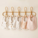 • SOFT and ABSORBENT: The front of baby bibs are made of 100% cotton(Muslin) and the back are polyester(comfort fleece) for maximum absorption with skin-friendly soft touch. The bib soaks up all drools and spits to keep you and your baby clean and dry, no more wet clothes!