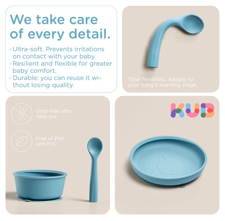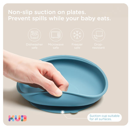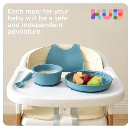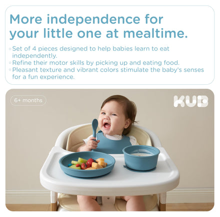 KUB Silicone Baby Feeding Set, Self Feeding Baby Utensils with Suction Baby Bowl Plate Blue