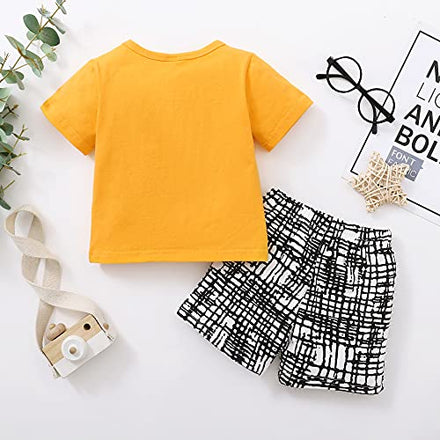 Kucnuzki Toddler Baby Boy Clothes Summer Outfits Short Sleeve Letters Printed Shirt Shorts Sets 2PC Little Boy Clothing (Yellow, 18-24 Months)