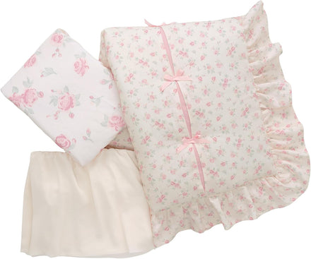 Lambs & Ivy Coquette Floral Pink Bows Aesthetic 3-Piece Baby Crib Bedding Set