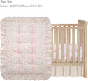 • 3 piece crib bedding set includes one quilt, one 100% cotton breathable fitted crib/toddler sheet, and one decorative crib skirt