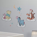 • Officially licensed DIsney Baby wall decals Feature Winnie the Pooh, Tigger, Piglet, and Eeyore on floating clouds