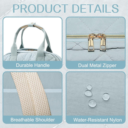 • 【WATERPROOF NYLON WITH QUILTED EMBROIDERY】This large diaper tote bag is durable, The shoulder straps and handle are double-stitched so they won't tear easily when carrying heavy essentials. The surface is well-made nylon material that is waterproof and easy to clean. The lining is made of fabric that is easy to wipe clean. No worrying about milk or water spills.