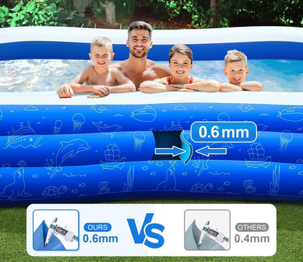 • 🏊【Thicker PVC Material】The blow up pool are made of Lead-Free, and BPA-free PVC materials that comply with international safety standards. Designed for durability, the large inflatable pool features a thickness of 0.6mm, providing excellent puncture resistance for enhanced safety and longevity.