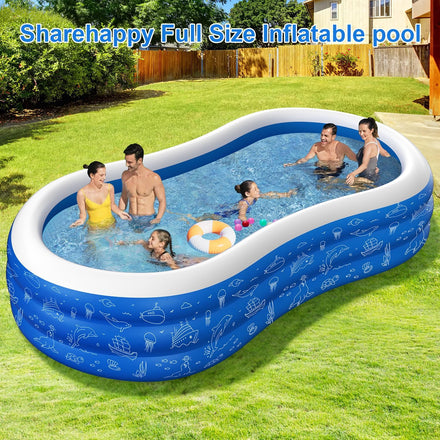 Large Inflatable Pool for Kids Adults, 145" X 74" X 22" Blow Up Pools Big Swimming Pool, Thickened Oversized Family Kiddie Pools for Backyard Outdoor Garden Water Party (Pump Not Included)