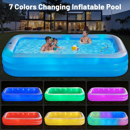 Large Solar Inflatable Pool with Lights, 130"x72"x22" Blow-Up Kiddie Pool with Air PUM, 7 Color Changed Family Swimming Pool for Backyard, Outdoor