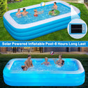 • Solar Powered & Color Changing Inflatable Pool: The Inflatable pool equipped with solar panels and lights gives you a different pool party experience. The solar panel can be automatically charged during the day, running up to 8 hours. Tips: Please let the solar panels get enough sunlight before use