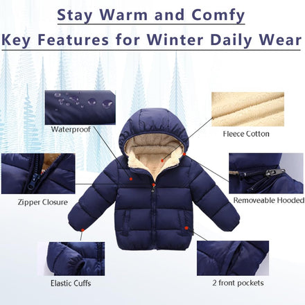 • ✅ ADORABLE DESIGN-- A detachable hooded coat, With zip closure; two slant pockets;elastic cuffs and hem seal in warmth.