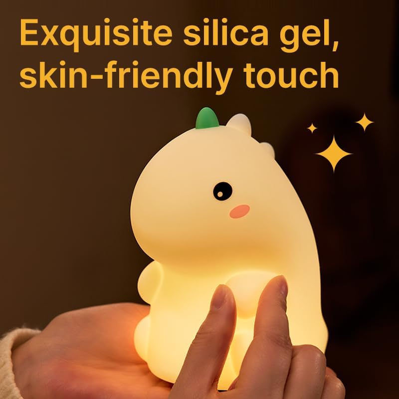 LED Dinosaur Night Light, 3 Level Dimmable Nursery Decor, Cute Lamp Silicone Squishy Light, Rechargeable Bedside Touch Lamp for Breastfeeding Toddler Baby Kids Decor