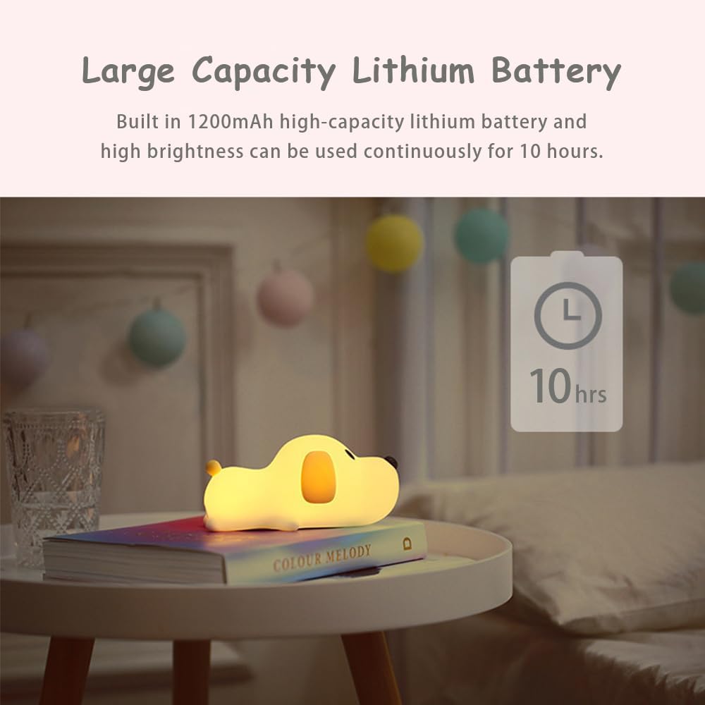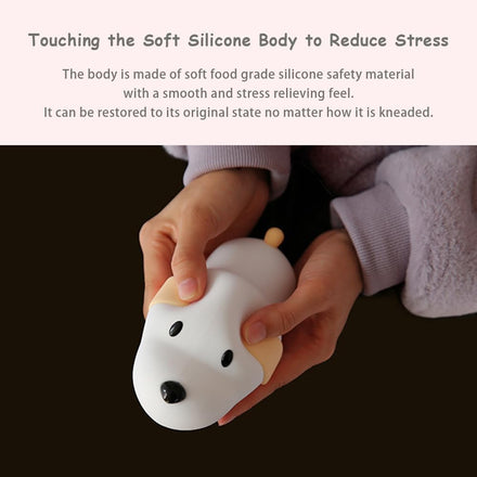 This cute dog night light is made of soft food grade silicone with a smooth touch that can be restored to its original state no matter how it is kneaded.It is a good companion for children to play and sleep with.