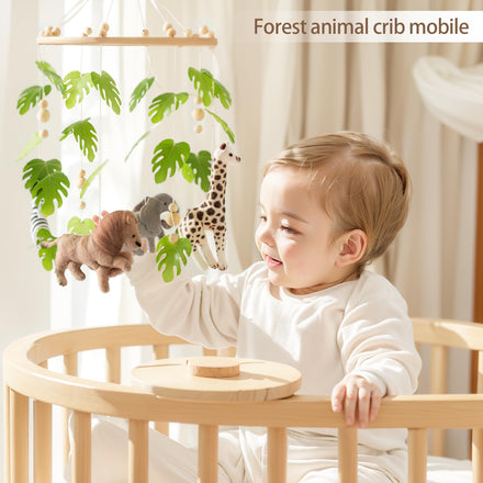 • HANDMADE&HAND-STRUNG: Made with beech wood hoops, maple wood beads, felt animals, and non-woven fabric leaves; Our jungle nursery mobile is finely tailored, handcrafted, with attention to detail; Each piece is hand-strung, ensuring a high-quality, durable, and safe addition to your baby's nursery
