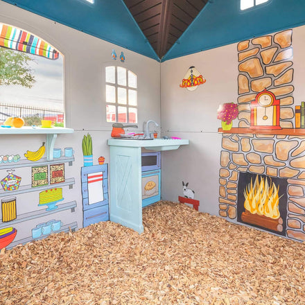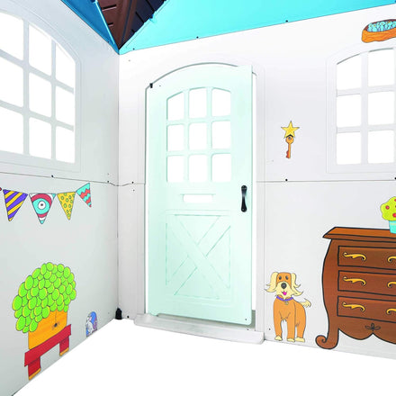 • Reusable stickers: Fun shapes featuring furniture, plants, pets, and more. weather resistant and can be moved around throughout the playhouse