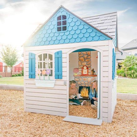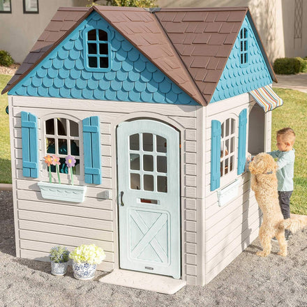 Lifetime Heavy Duty Plastic Outdoor Playhouse, 6ft x 6ft x 7 ft Tall, Beige & Blue