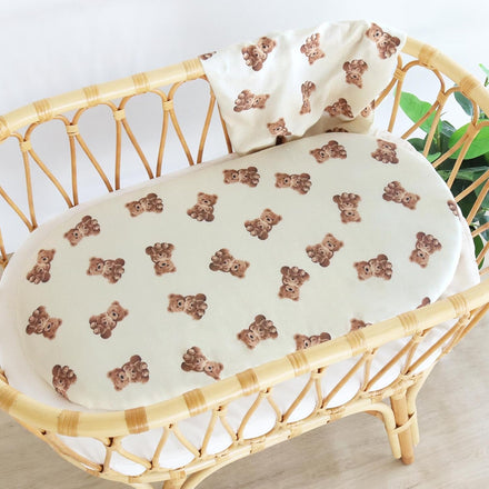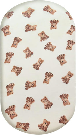 LifeTree Muslin Bassinet Sheets Unisex, Soft Breathable Fitted Baby Bassinet Sheets, 1 Pack for Standard Bassinet for Baby Boys Girls, 70% Viscose from Bamboo + 30% Cotton, Bear Pattern, 32" x 16"