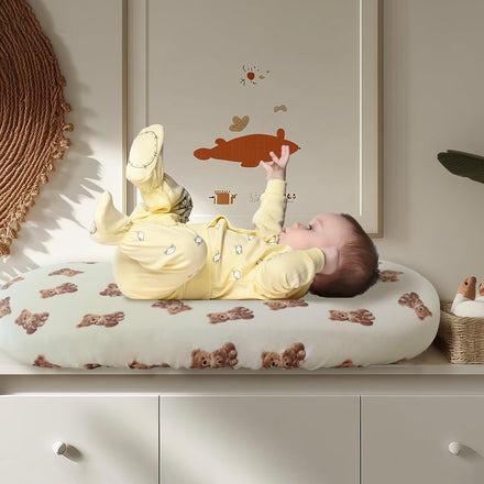 LifeTree baby bassinet covers are made of 70% viscose from bamboo and 30% cotton blend, there are no toxic dyes and harmful chemical free in close with baby's skin. It will create a soft and cuddly surface, so your baby lay down to sleep in a soft and breathable newborn bassinet cover! For all the Moms who love animal look the bear are perfect on a baby bassinet cover. The cute bear is ideal to match any bedding decor. Perfect for baby girls and boys. This baby bedding is an absolute must have for your baby registry; the perfect baby shower gift for a mom you love. Our muslin bassinet covers are soft, lightweight and breathable, keeping your baby cozy, which reducing the chance of overheating. The elastic edges design ensures easy insertion and removal, providing a snug and secure fit for your baby's lounger. 32in x 16in / 81cm x 40.6cm. Designed specifically for baby bassinet and these covers are fit most bassinet and cradle. Machine washable to make your life easy, wash alone or with similar texture/ color items, tumble dry low. Muslin is made using unique weaving techniques that allow air to circulate freely, hence it is known as the 'breathing gauze', Lightweight: Suitable for any season. Breathable: Helps regulate body temperature Soft: Suitable for infants and children. Moisture absorption: keep babies dry and comfortable Durable: easy to clean and dry, the softer it becomes as it is washed