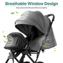 - 【All-Weather Protection】Extendable UPF50+ sun canopy with breathable mesh window blocks 90% UV rays. Extra sun visor provides 60% more coverage for head-to-toe shade on sunny days.