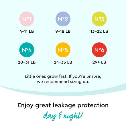 • Fit to perfection and full leakage protection: Snug, stretchy and secure, our diapers are available in six sizes from 4 to 29+ lbs. .