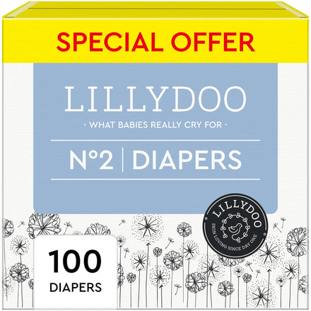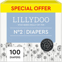 LILLYDOO Diapers - Size 2 (9-18 lbs), Half-Monthly Supply (100 Count), Skin-Friendly, Ultrasoft, Chlorine-Free & Absorbent Baby Diapers