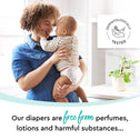 • Stay as soft as a baby’s bottom: Our diapers are safe for sensitive skin and dermatologically tested. They’re also hypoallergenic and free from perfumes, lotions and harmful substances as certified by OEKO-TEX STANDARD 100.
